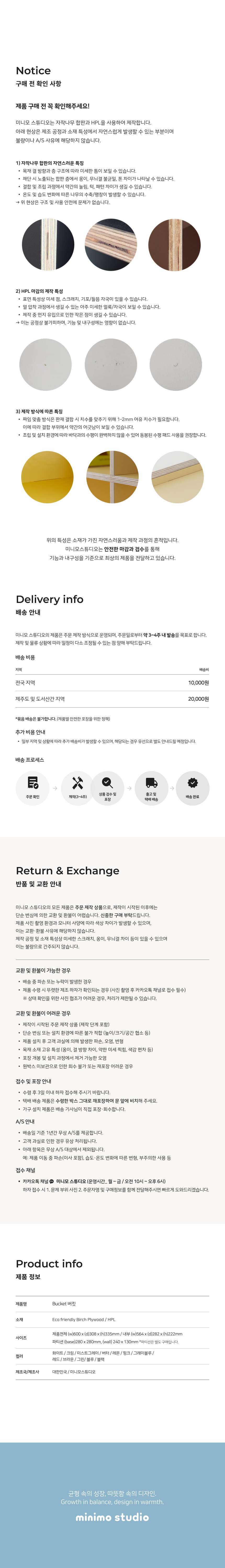 2. 제품의 생산 및 가공시 재료의 특성상 발생할 수밖에 없는 부분에 대해서는 교환 및 환불이 불가하오니 제품의 상세설명서를 꼭 읽어보시고 구매해 주세요.